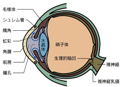 視神経が障害されて、視野が狭くなっていく病気です。眼圧の上昇が原因のひとつと言われています。